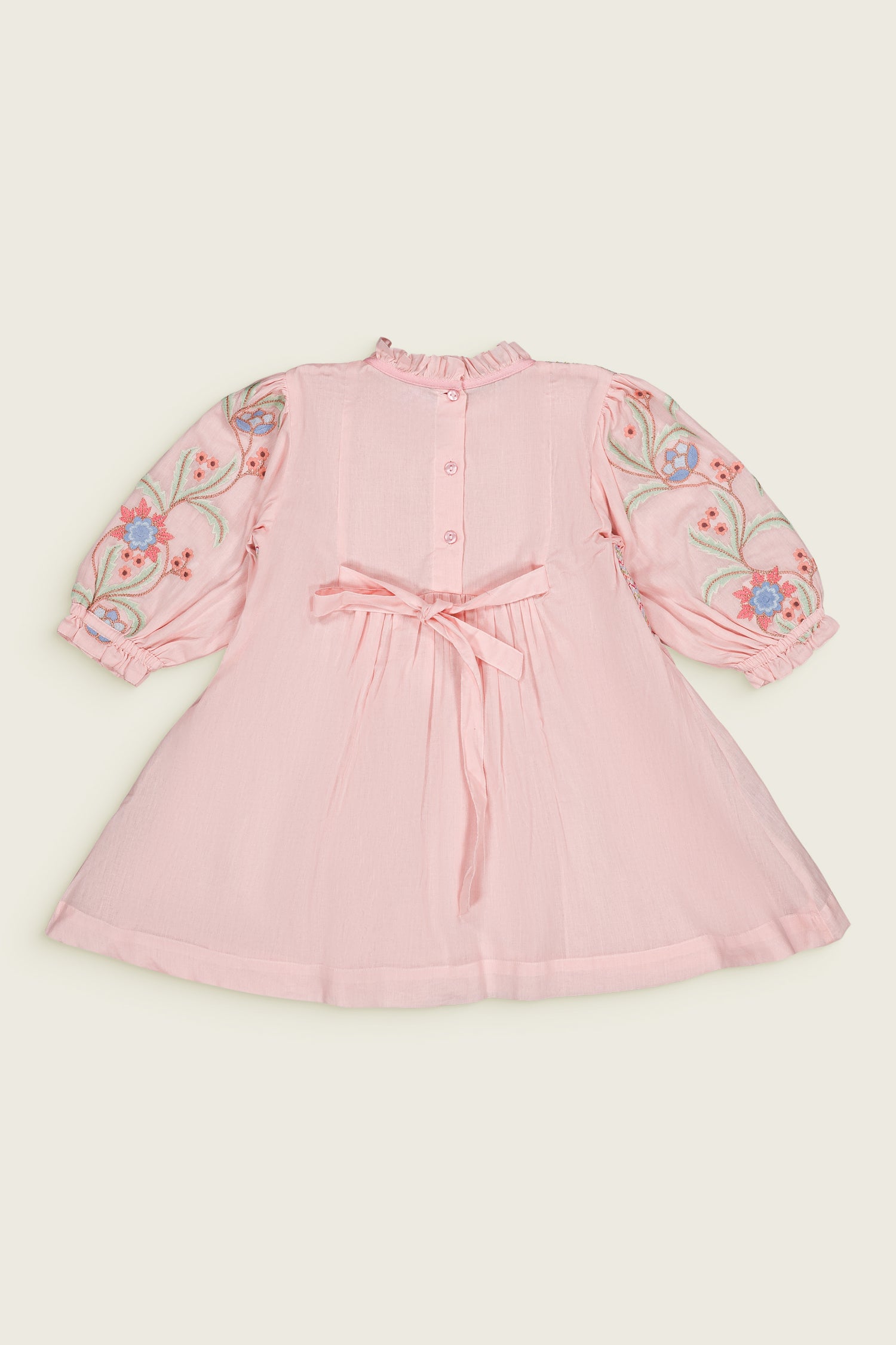 Pivoine Smocked Floral Organic Cotton Sleeves Dress Soft Pink