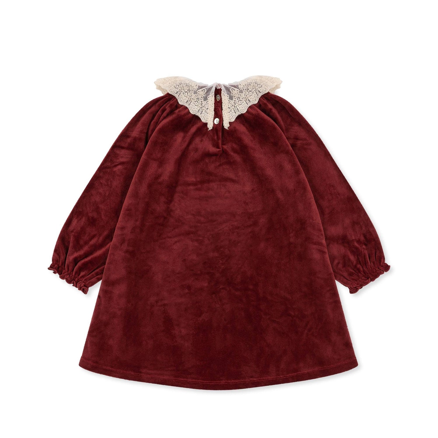 Introducing the VENOLA—a festive dress that's pure magic from collar to hem! Luxuriously soft velvet drapes beautifully in a relaxed, gently A-shaped silhouette that moves with you. The standout feature? A delicate lace collar that adds vintage charm and playful elegance. Made with 80% GRS-certified recycled polyester, this dress lets you celebrate in style while making a sustainable choice. Perfect for holiday gatherings and special moments.