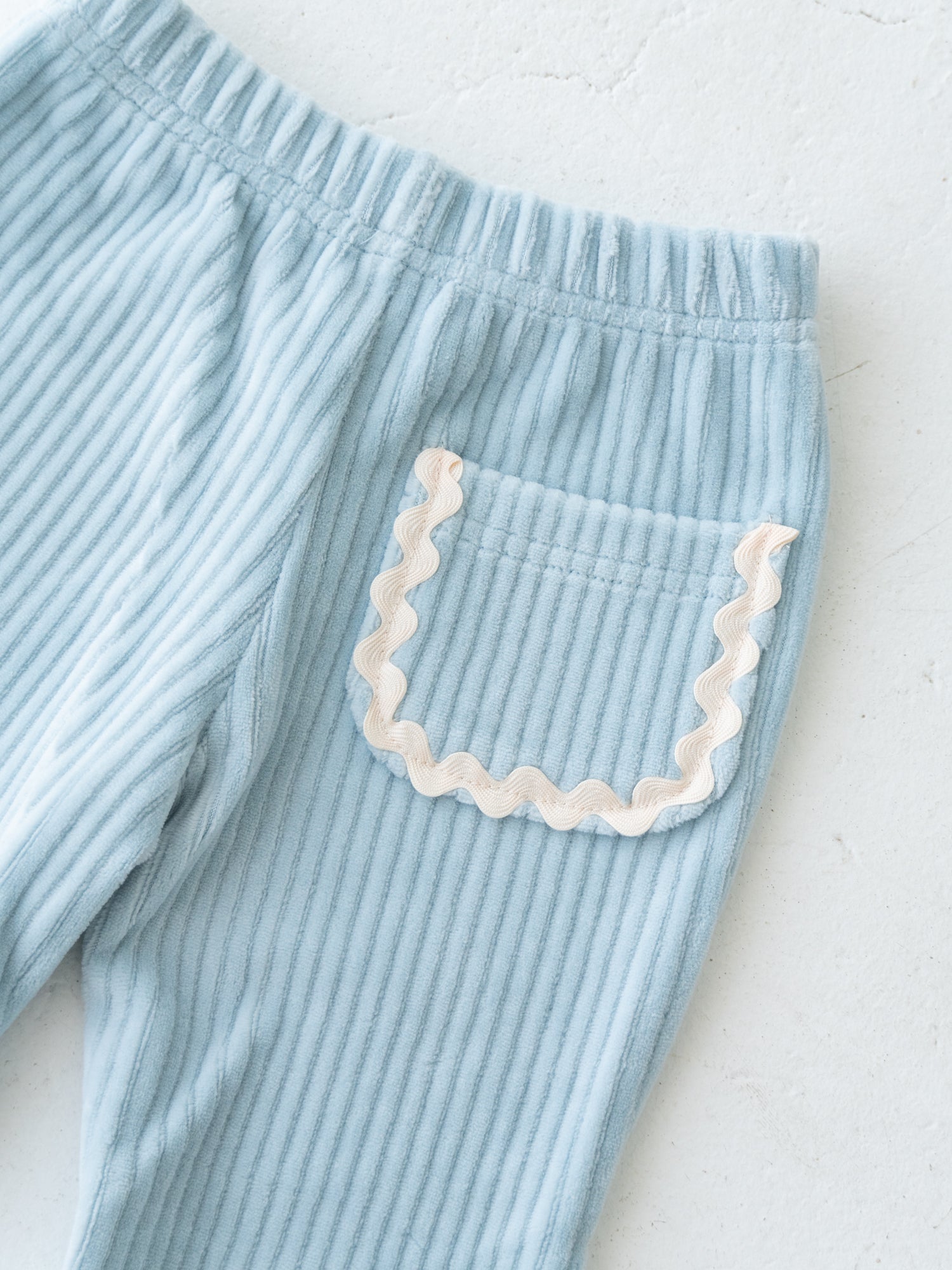 Velour Flare Ribbed Pants Ice Blue from Pippi + Lotta Japan.