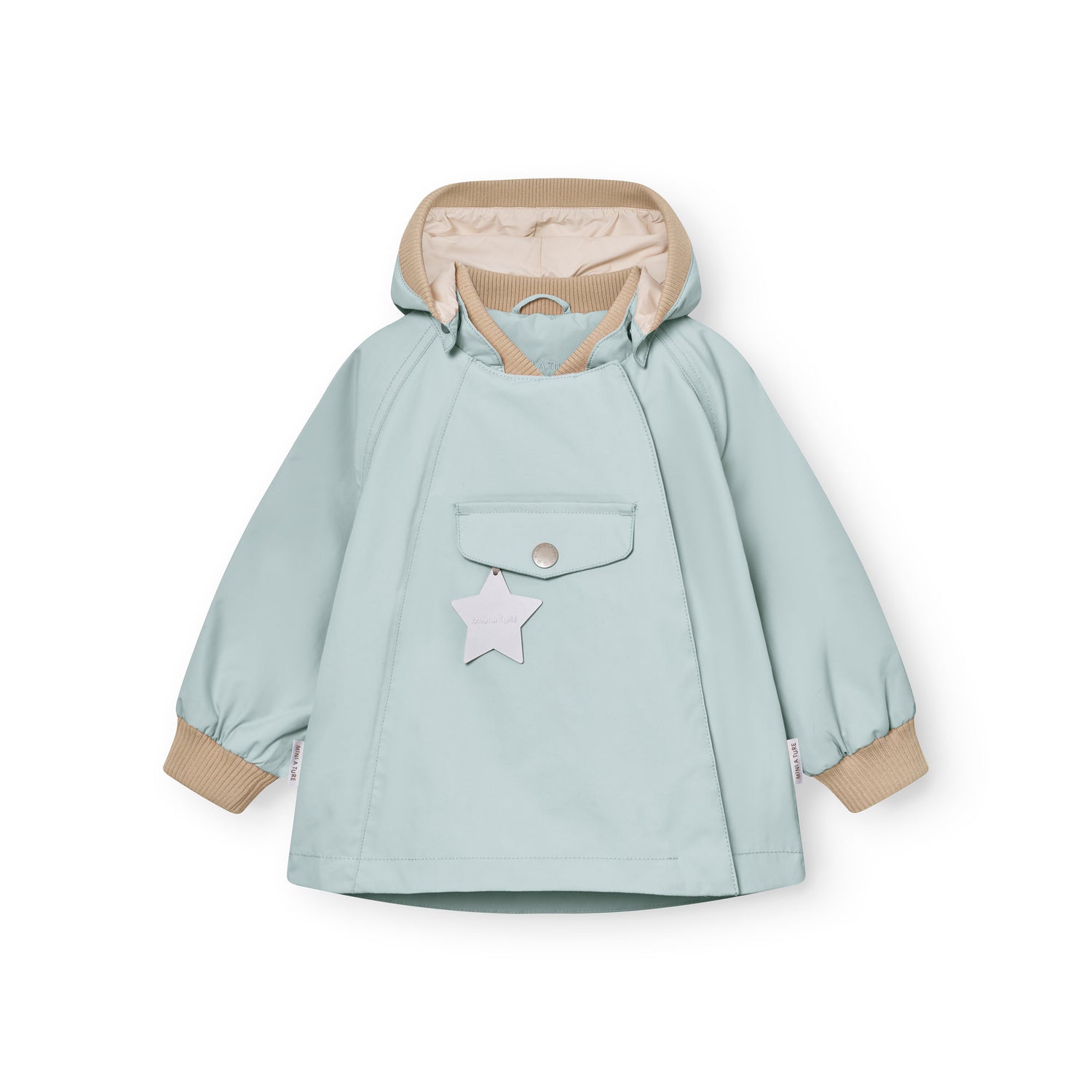 Made from a waterproof and breathable technical fabric, it keeps little ones dry and comfortable while allowing freedom of movement. The soft ribbed trims and lightweight lining add warmth without bulk, while the signature MINI A TURE star reflector enhances visibility.